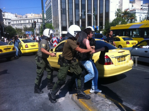 Ένταση επικράτησε μπροστά στη Βουλή όταν άνδρες των ΜΑΤ απώθησαν βίαια τους μαθητές από τα γυμνάσια και τα λύκεια των νοτίων προαστίων που έκαναν καθιστική διαμαρτυρία. ΦΩΤΟ και VIDEO