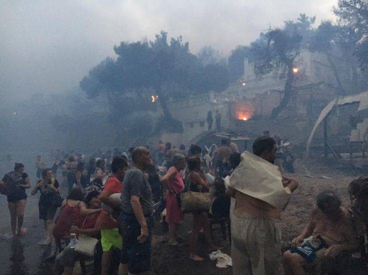 Όπως φαίνεται στα βίντεο, τα οποία ανέβασε η Έλια Καλλία στο Facebook, ακόμα και μέσα στη θάλασσα η κατάσταση ήταν αποπνικτική από τους καπνούς και οι άνθρωποι με δυσκολία έπαιρναν ανάσες, καθώς πανικόβλητοι αναζητούσαν τη σωτηρία από την πύρινη λαίλαπα.