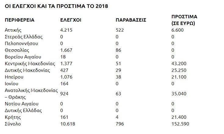 Οπως φαίνεται από τα συγκεντρωτικά στοιχεία ήταν σύνηθες μέχρι σήμερα να διαπιστώνονται παραβάσεις αλλά να μην επιβάλλονται πρόστιμα.