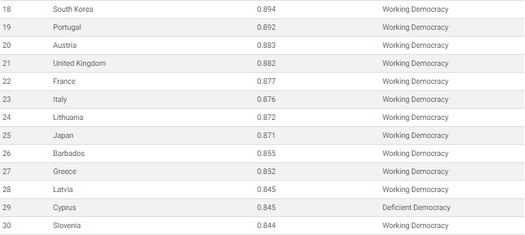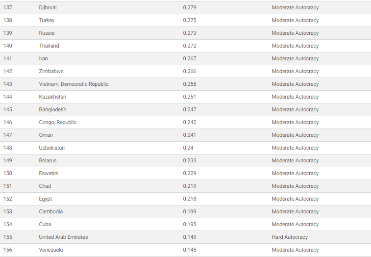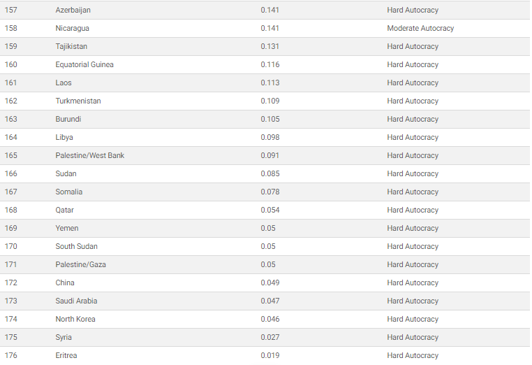 ποιότητας της δημοκρατίας σε περισσότερες από 170 χώρες κατά την περίοδο