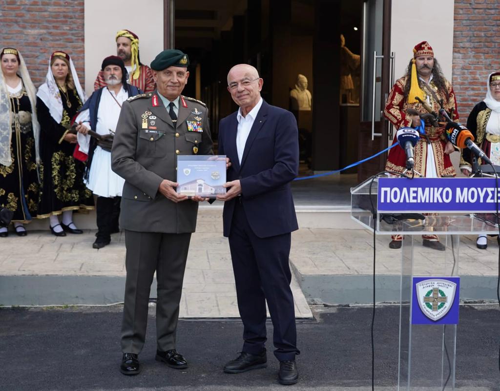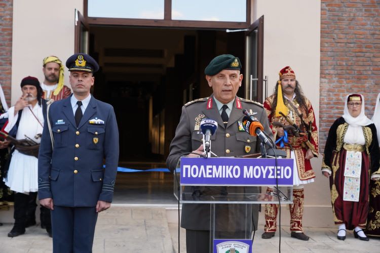 Κατά τον σύντομο χαιρετισμό του, ο Αρχηγός ΓΕΕΘΑ εξέφρασε την ιδιαίτερη συγκίνησή του που βρέθηκε στην Χαλκίδα που αποτελεί την γενέτειρά του, για τα εγκαίνια του Πολεμικού Μουσείου Χαλκίδας. Αναφέρθηκε στην σημασία του νέου Παραρτήματος του Πολεμικού Μουσείου Αθηνών καθώς θα αποτελέσει ένα ακόμη ασφαλές καταφύγιο της πολύτιμης ιστορικής μνήμης και ένα πραγματικό κόσμημα για την ευρύτερη περιοχή.