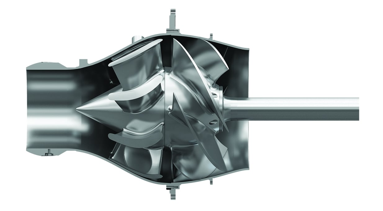 Το νερό εισόδου είναι ένα σχετικά χαμηλής ενέργειας ρευστό αφού βρίσκεται σε ηρεμία πριν την αναρρόφηση. Για να δημιουργηθεί επαρκής ώθηση, πρέπει να μετατραπεί σε ρευστό υψηλής ενέργειας. Αυτό επιτυγχάνεται με την πρόκληση ενός στοιχείου στροβιλισμού χρησιμοποιώντας στροφείο με λεπίδες καθώς και με χρήση πτερωτής και διάταξης στάτορα (όχι πάντα).