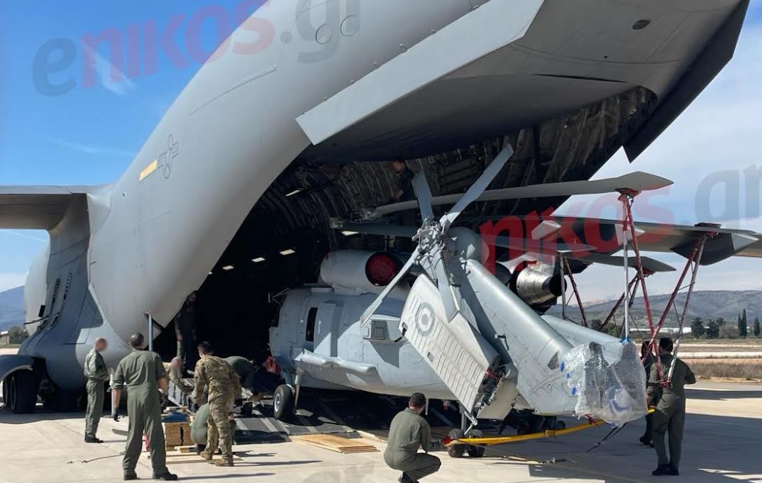 Είχε προηγηθεί η παράδοση 2 ελικοπτέρων Romeo στο αεροδρόμιο της Ελευσίνας στις 24 Φεβρουαρίου, με το enikos.gr να έχει αποκλειστική φωτογραφία από τη στιγμή εκφόρτωσής τους από το θηριώδες μεταγωγικό C-17 της Αμερικανικής Πολεμικής Αεροπορίας, που προσγειώθηκε στην αναβαθμισμένη πίστα της 112 Πτέρυγας Μάχης, στην Ελευσίνα.