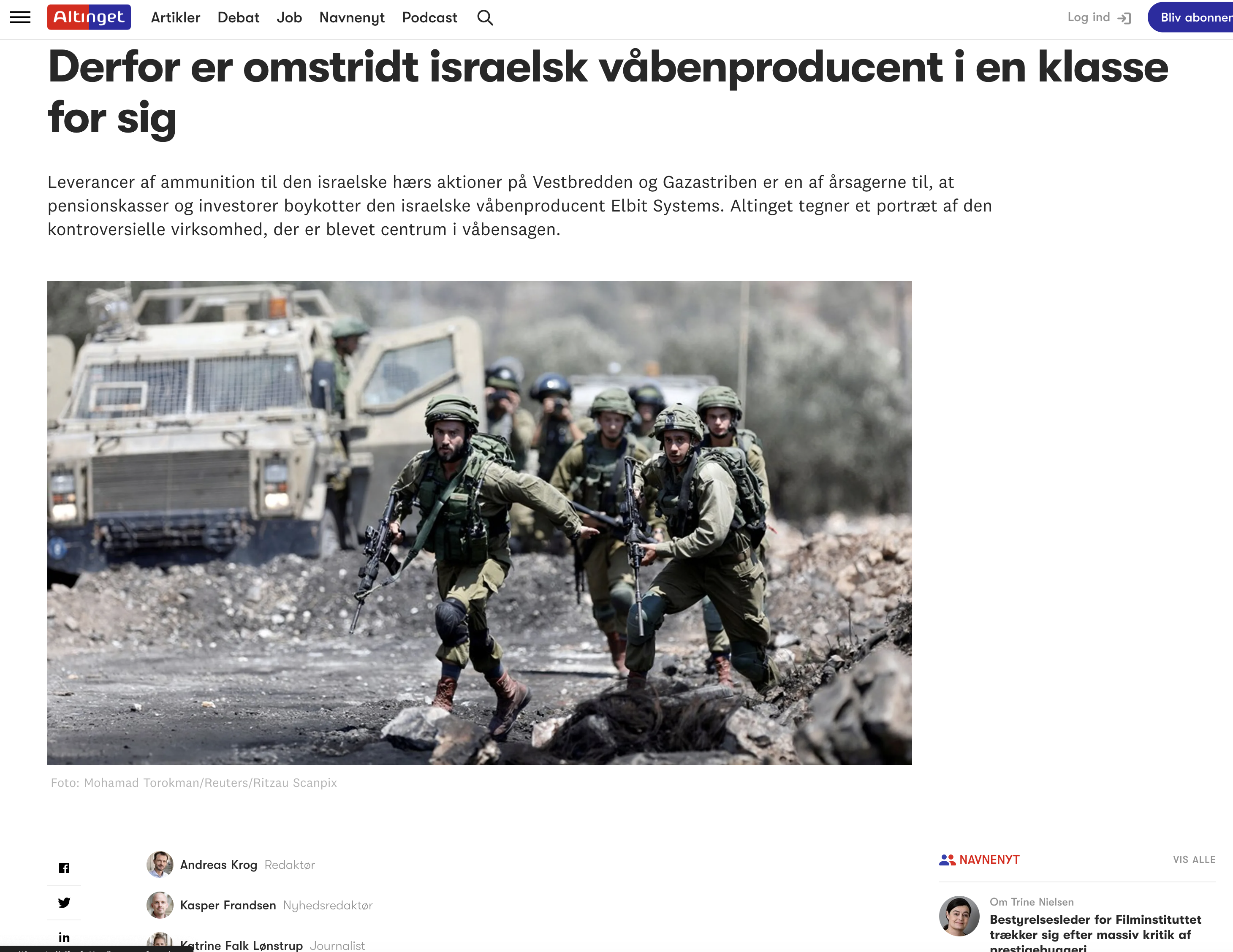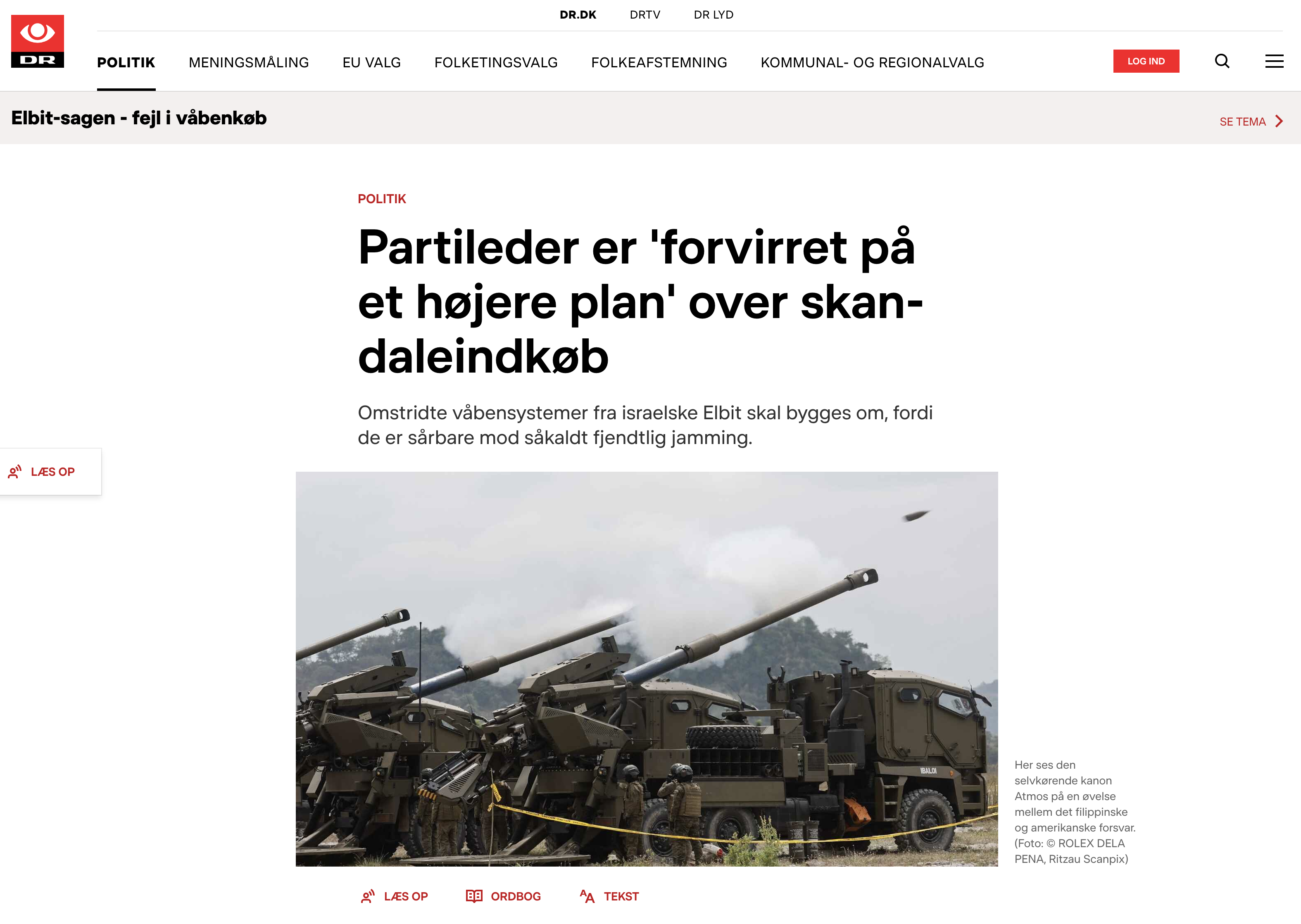 Όπως αναφέρει ένα άλλο Μέσο Ενημέρωσης της Δανίας, το Avisen Danmark «η πορεία των αγορών όπλων από την ισραηλινή εταιρεία έχει ήδη δημιουργήσει μεγάλη συζήτηση, καθώς το κοινοβούλιο της Δανίας παραπλανήθηκε, μεταξύ άλλων, σχετικά με την αγορά, η οποία έγινε άσκοπα γρήγορα».