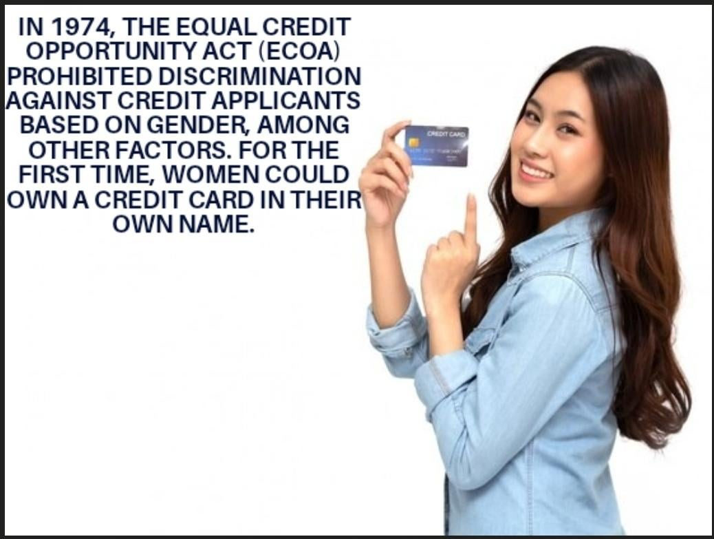 «Μόνο πριν από το 1974 επιτρεπόταν στις γυναίκες να ανοίξουν μια πιστωτική κάρτα με το δικό τους όνομα», αναφέρει εμφατικά το άρθρο της Globe. Πριν από το 1974, αν οι γυναίκες ήθελαν να ανοίξουν μια πιστωτική κάρτα, θα τους ζητούσαν ένα σωρό παρεμβατικές ερωτήσεις, όπως αν ήταν παντρεμένες ή αν σχεδίαζαν να αποκτήσουν παιδιά. Αν μια γυναίκα ήταν παντρεμένη, θα μπορούσε (ελπίζοντας) να πάρει μια πιστωτική κάρτα με τον σύζυγό της. Αλλά οι ανύπαντρες, διαζευγμένες ή χήρες γυναίκες δεν επιτρεπόταν να πάρουν μια δική τους πιστωτική κάρτα - έπρεπε να έχουν έναν άνδρα να συνυπογράψει για την αίτηση πίστωσης.