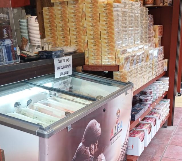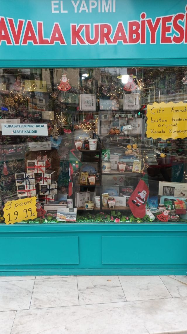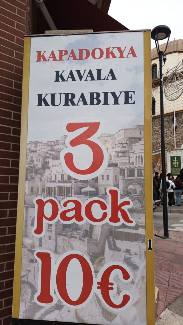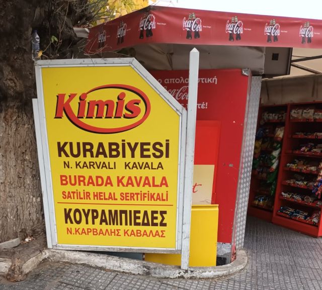 Παντού η πόλη είναι γεμάτη με τουρκικές πινακίδες που προτρέπουν στην αγορά κουραμπιέδων με ΤΕΡΑΣΤΙΑ τουρκικά γράμματα.
