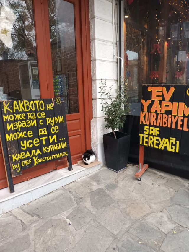 Αλλά ακόμα κι αν είναι «δουλίτσες» η αιτία, οι ελληνικές πινακίδες που είναι; Μόνο Τούρκοι τουρίστες αγοράζουν κουραμπιέδες; Δεν έχουν κουραμπιέδες στην Τουρκία;
